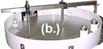 - Industrial turntable with a solid guide ring around & above the table surface (